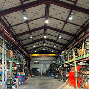 LED照明増設工事、2階事務所裏口非常扉と避難はしご設置